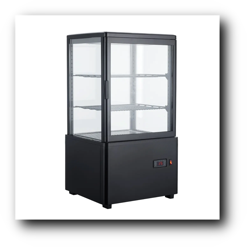 - Подвійне скло з усіх чотирьох боків забезпечує чудову видимість товару без втрати холоду.